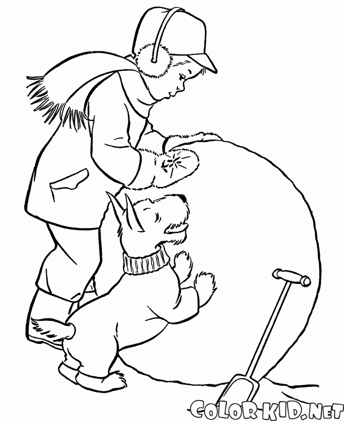 填色画 - 男孩刻畫雪人