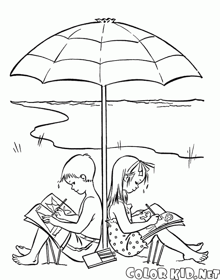 填色画 - 在來自太陽的傘兒童