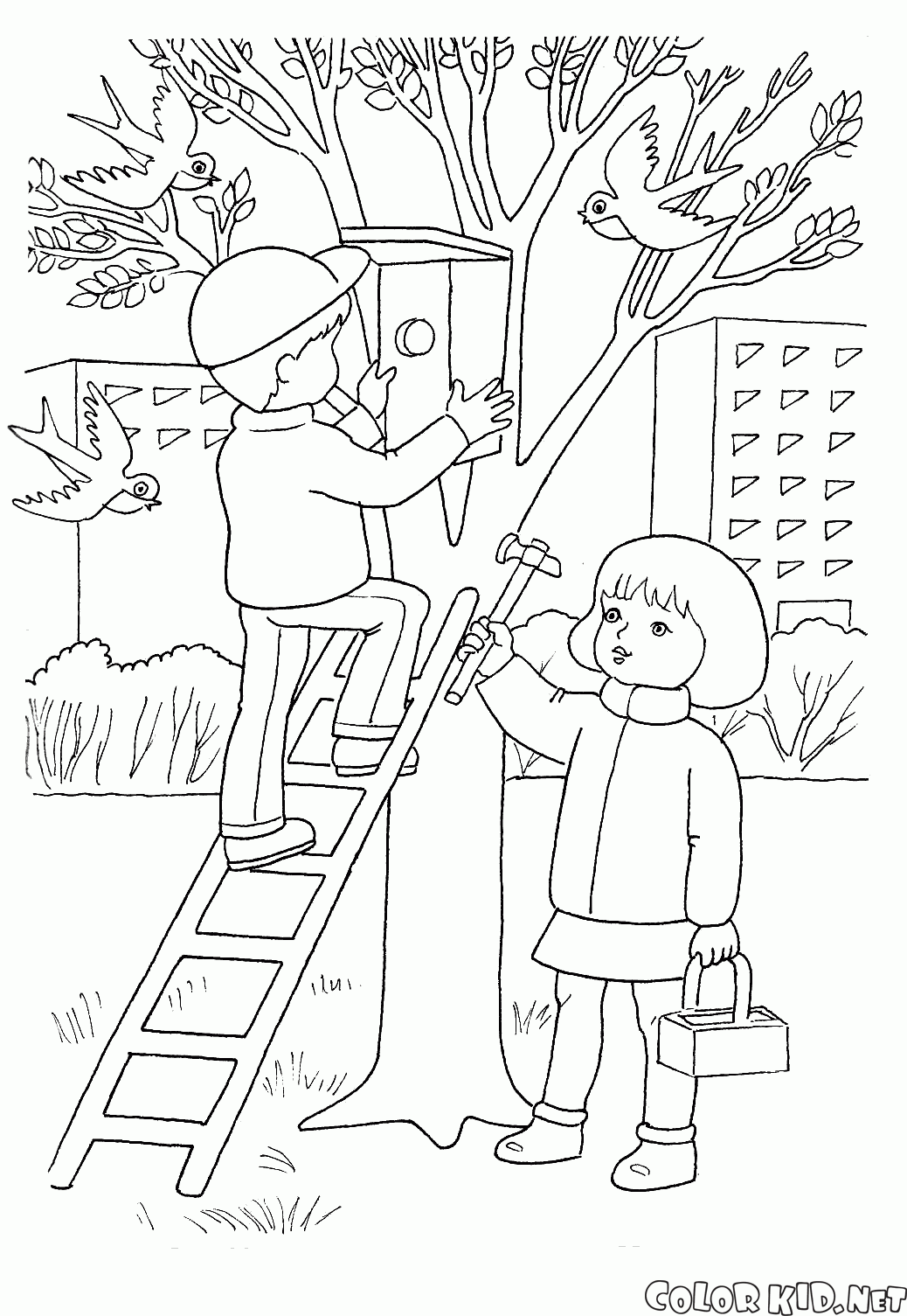 您可以從我們的網站給兒童 鳥巢在樹上 下載並列印填色頁。