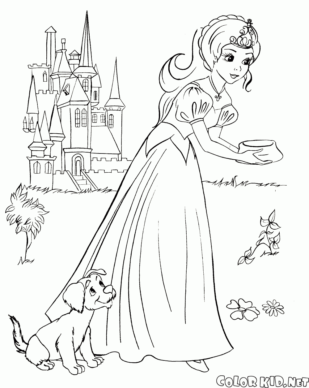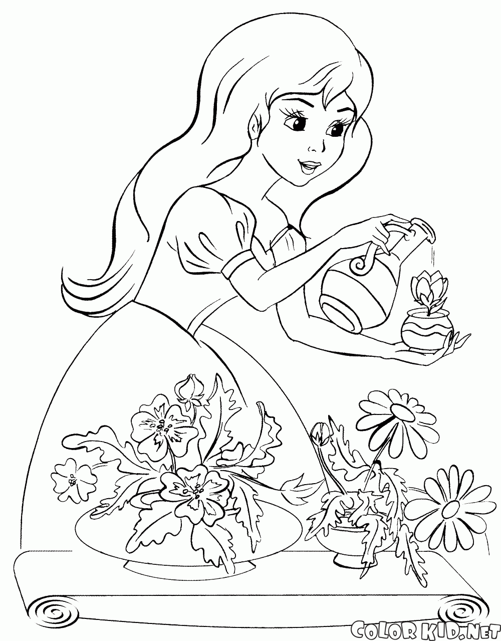 填色画 - 公主澆花