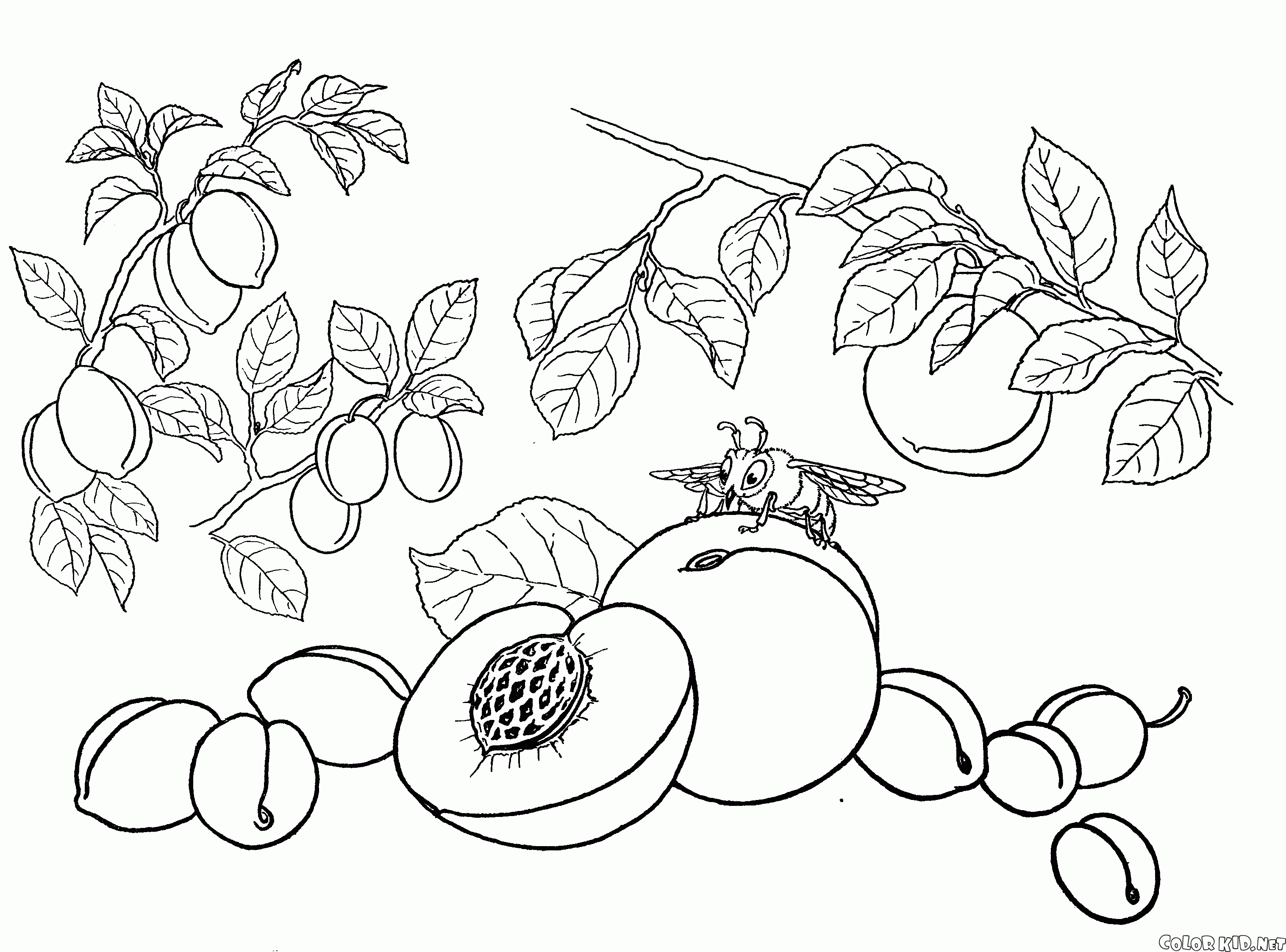 填色画 - 桃,杏,李子