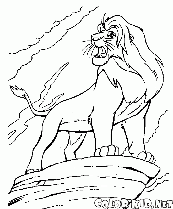 填色画 - 辛巴在岩石上
