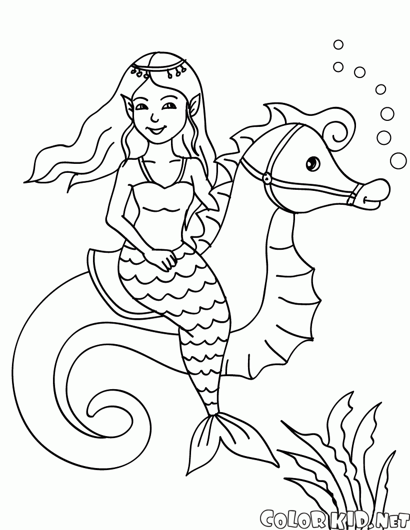 填色画 - 美人魚和海馬