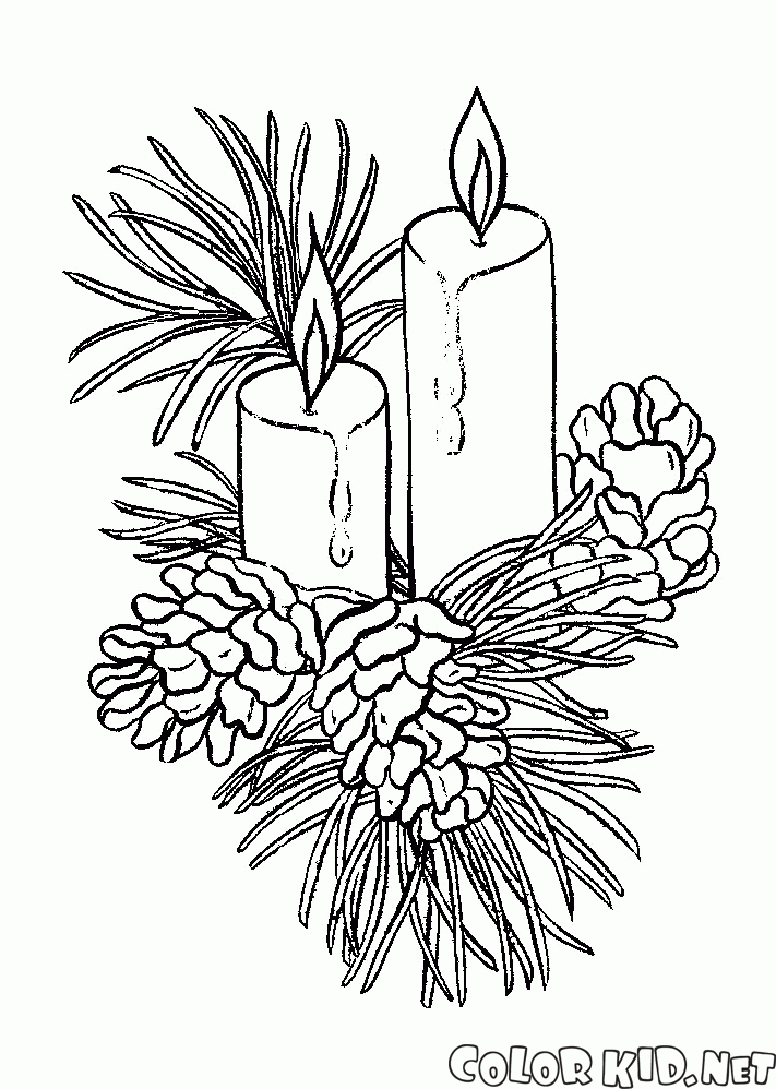 填色画 - 在一個分支聖誕蠟燭