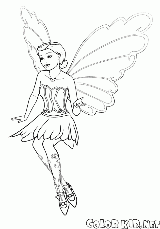 填色画 - 在飛行仙女蝴蝶