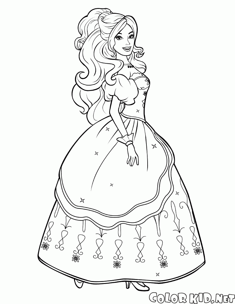 填色画 - 芭比娃娃在漂亮的裙子