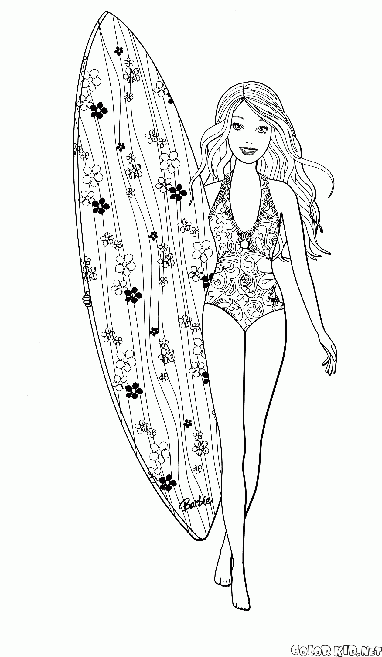 填色画 - 芭比娃娃是從事衝浪