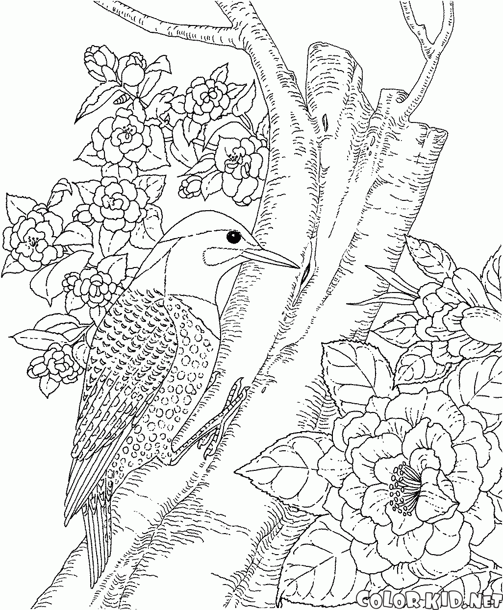 填色画 - 啄木鳥在森林