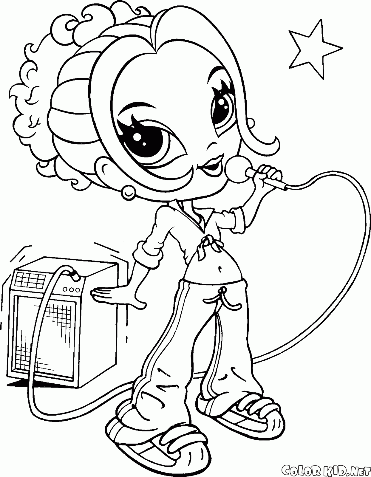填色画 - 女孩唱卡拉OK